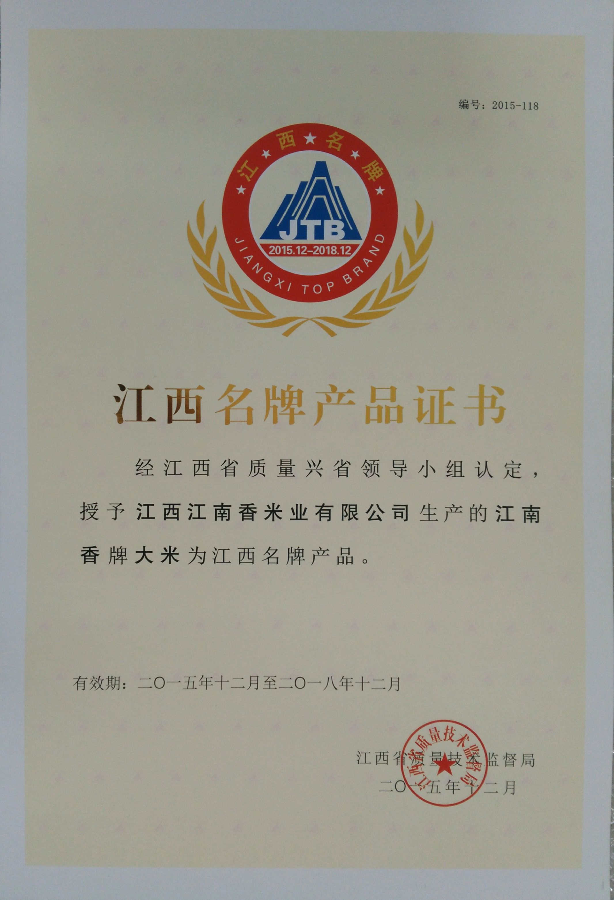 江西名牌證書