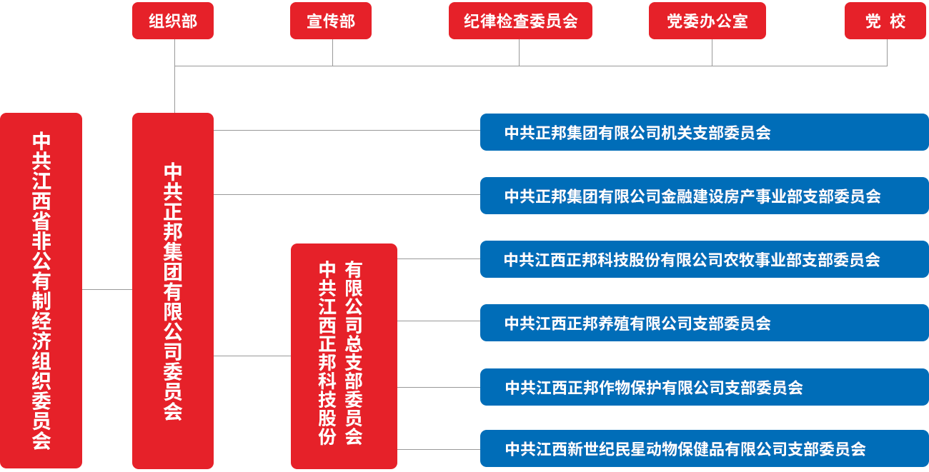 中共正邦集團有限公司委員會成立于2009年11月,隸屬于江西省非公有制經(jīng)濟組織黨委,是江西第一個民營企業(yè)黨組織。正邦集團董事長、總裁林印孫擔(dān)任集團黨委書記,集團現(xiàn)有黨員1623人。集團黨委按照“一方所屬、雙重管理”的模式,直屬下轄1個黨總支、6個黨支部,對集團旗下分布在全國各地的各分、子公司16個黨支部實行雙重管理。